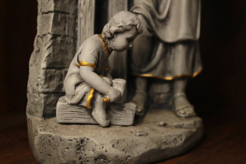 A imagem é produzida no gesso, com tinta de qualidade e verniz resistente.